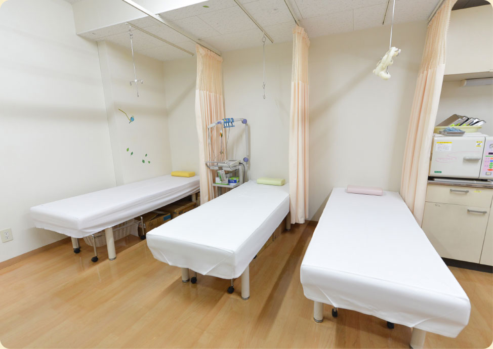 1階には受付、診察室、処置室、レントゲン室、内視鏡検査室があり、気軽に足を運びやすいようアットホームな雰囲気を大切にしています。 お子さん連れの方や車椅子の方も安心して受診いただけるよう、通路にはゆとりを持たせ、トイレもバリアフリーでおむつ替え用ベッドも備えております。